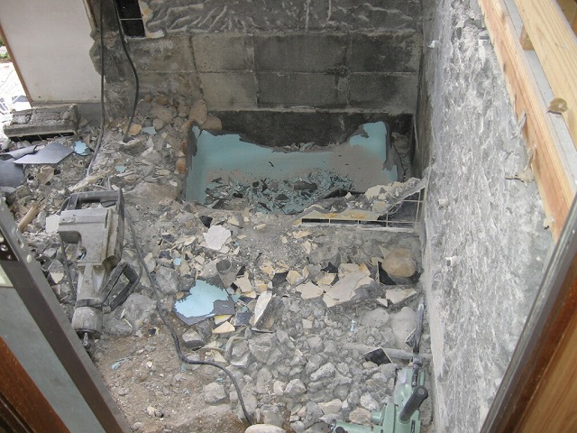 狭い中での工事なので非常に解体が大変です。大きな音もしますし、埃も出ます。