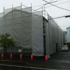 福島市のアパートマンション塗装工事で足場架け施工中(塗り...