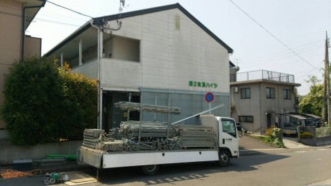 すべてシートで囲み、アパートの住人の方には大変ご迷惑をおかけしますが、完成した暁には目を見張ることでしょう。